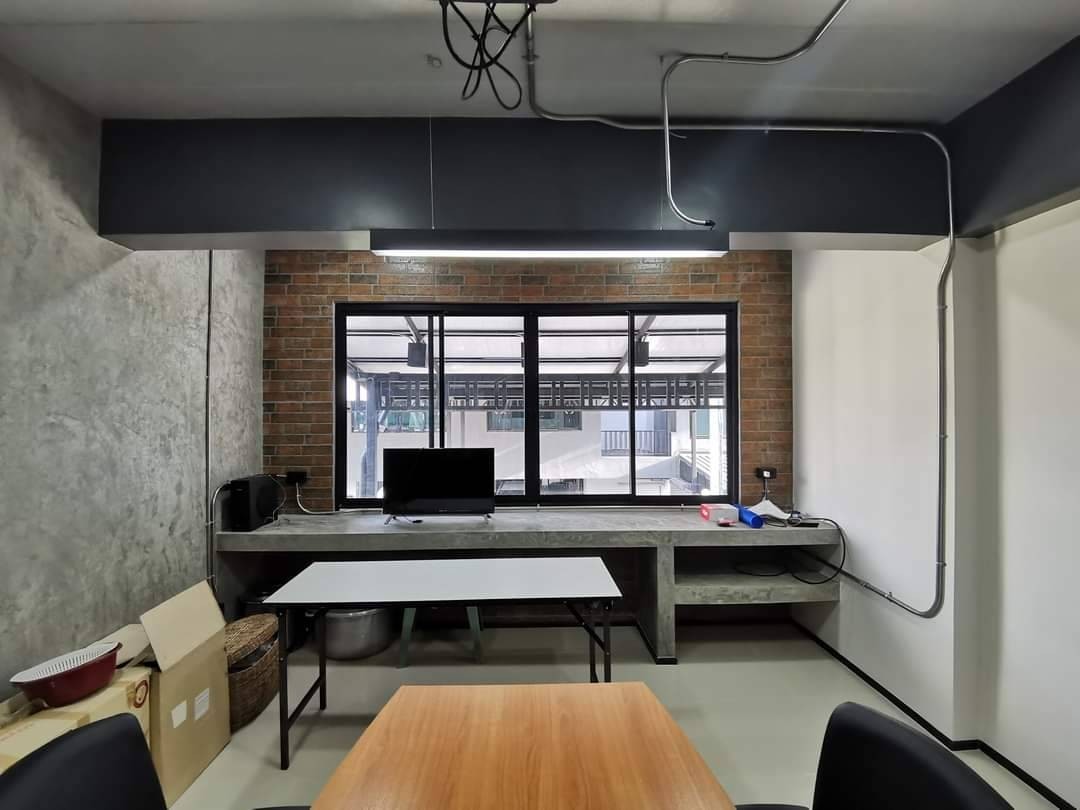 ผลงานรีโนเวททาวน์โฮม 3 ชั้น ให้กลายเป็น โฮมออฟฟิศ ปรับปรุงบ้านหลังเก่าให้มีสไตล์โมเดิร์นลอฟท์ ภายในบ้านตกแต่งสไตล์ Modern แฝงความเป็นลอฟท์ ระเบียงหลังบ้านปรับพื้นที่เพื่อก่อกระถางและเก้าอี้แบบปูนเปลือยขัดมัน ทำให้บ้านดูเท่และใช้พื้นที่ให้เกิดประโยชน์